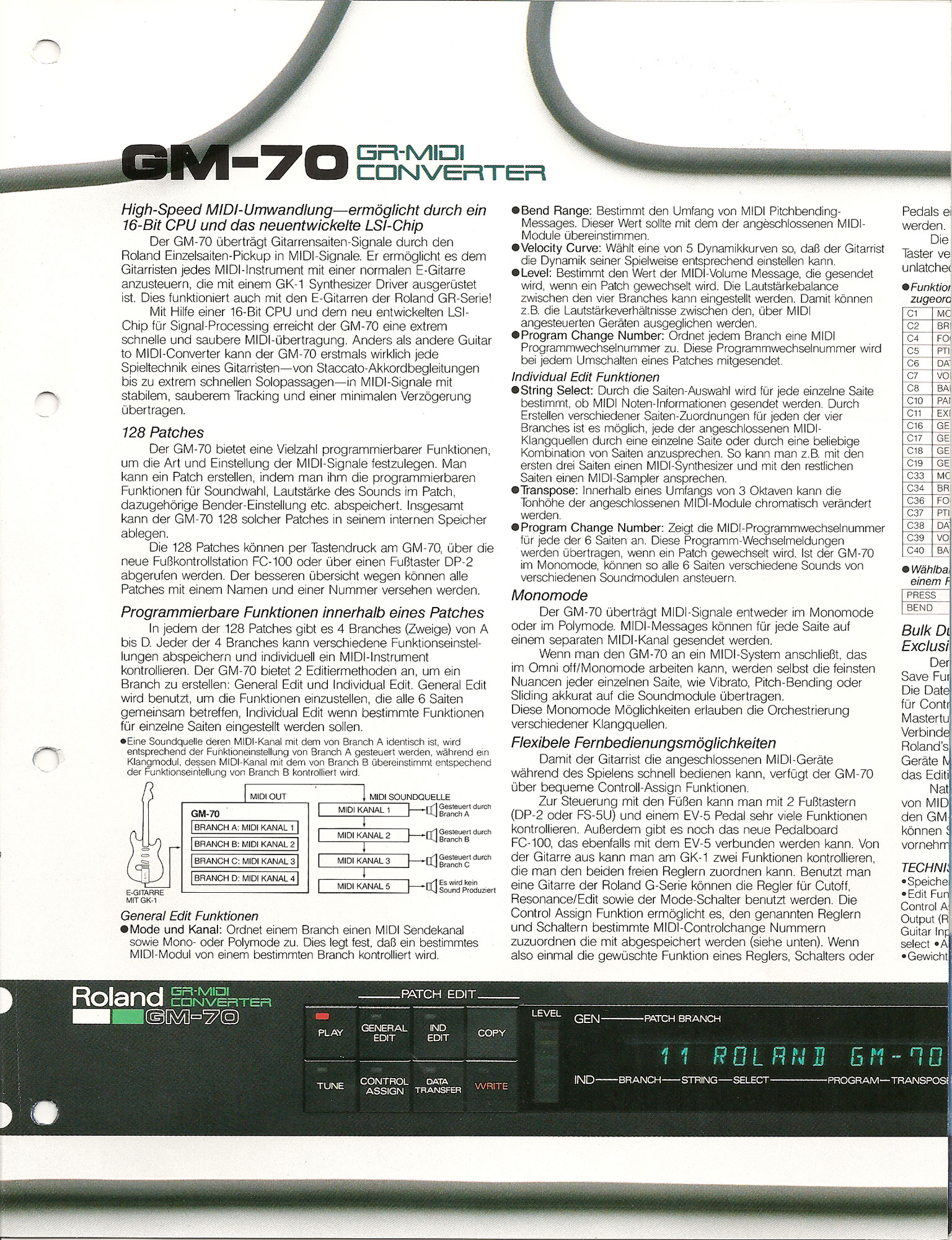 - Roland GM-70 Guitar-to-MIDI Converter - Review by Paul White, Music Technology Magazine, April 1987