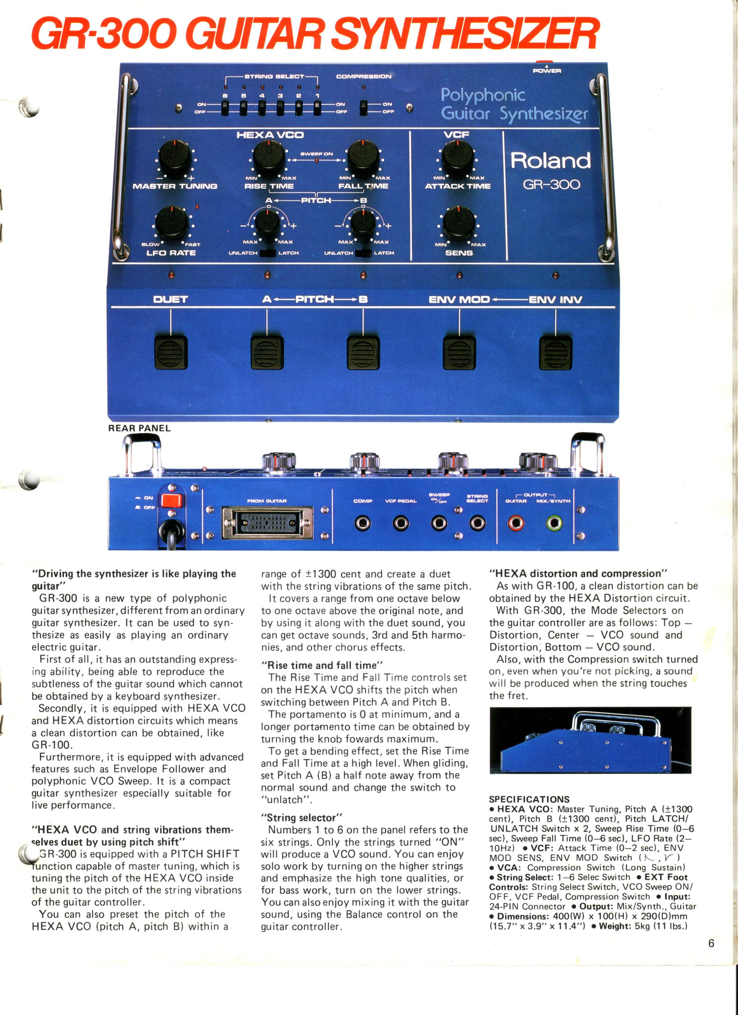 - History of the Guitar Synthesizer Travel back in time, before MIDI, before the Roland GR-700, to the early 1980s, when the Roland GR-300 was the pinnacle of guitar synthesizer technology.
