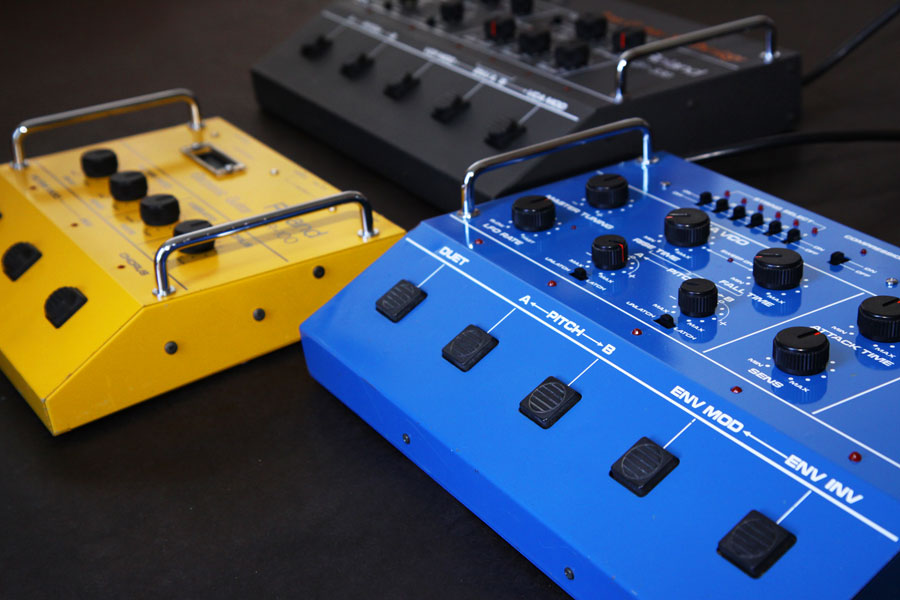 - Built-in foot switch controls the VCO mode (single/dual), VCO harmonize pitch (detuning of the VCO's), and VCF mode (on, bypass, or inverted)