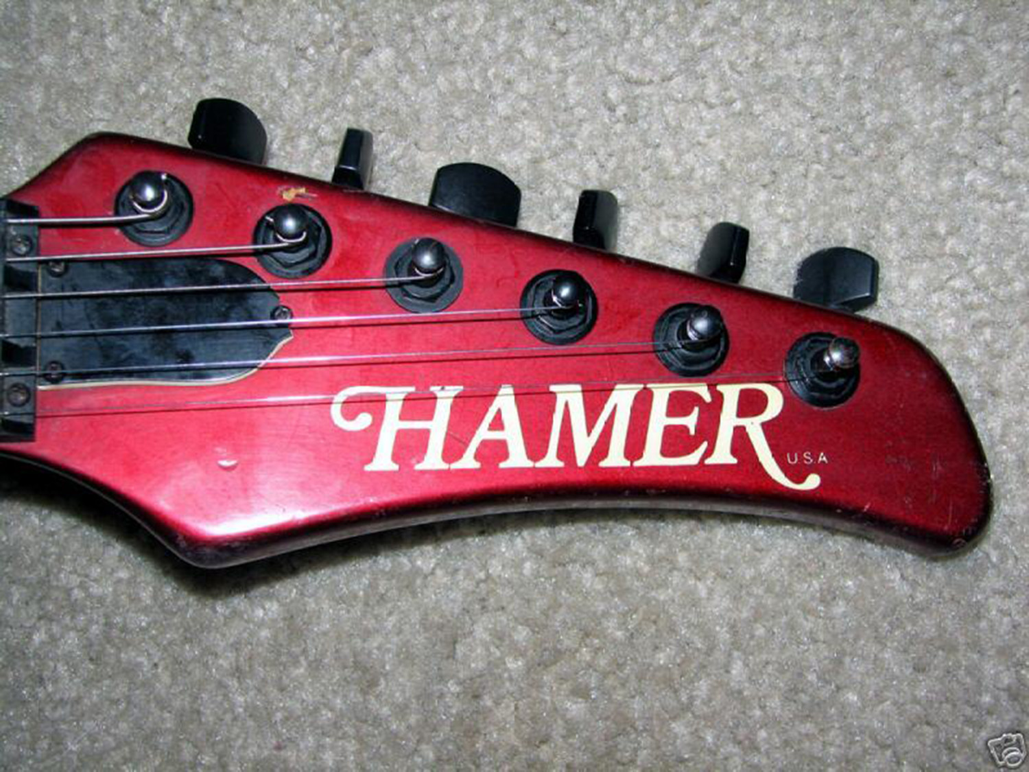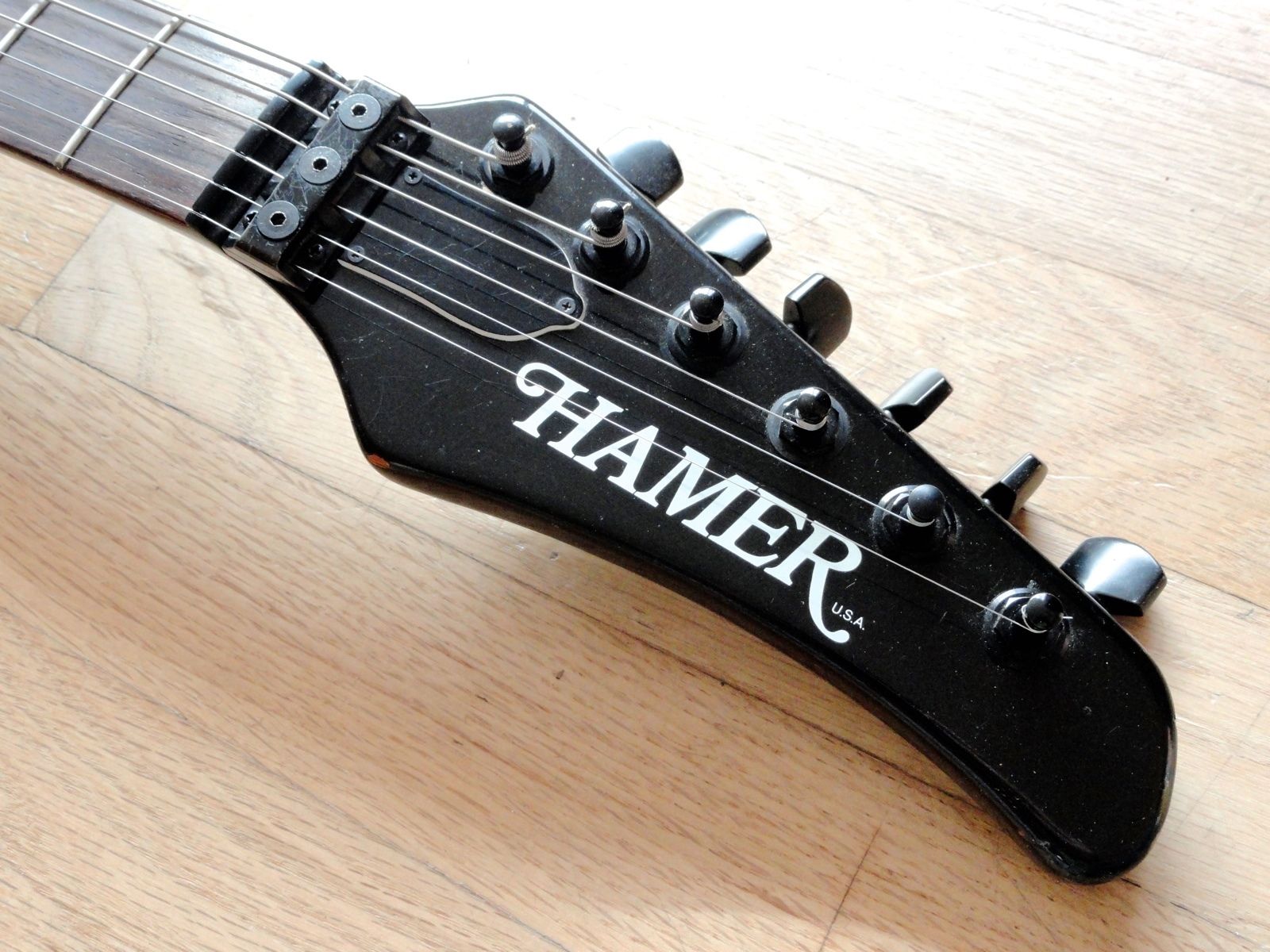 - Pickups: Hamer Slammers (one humbucker combined with a single-coil, plus one single-coil)